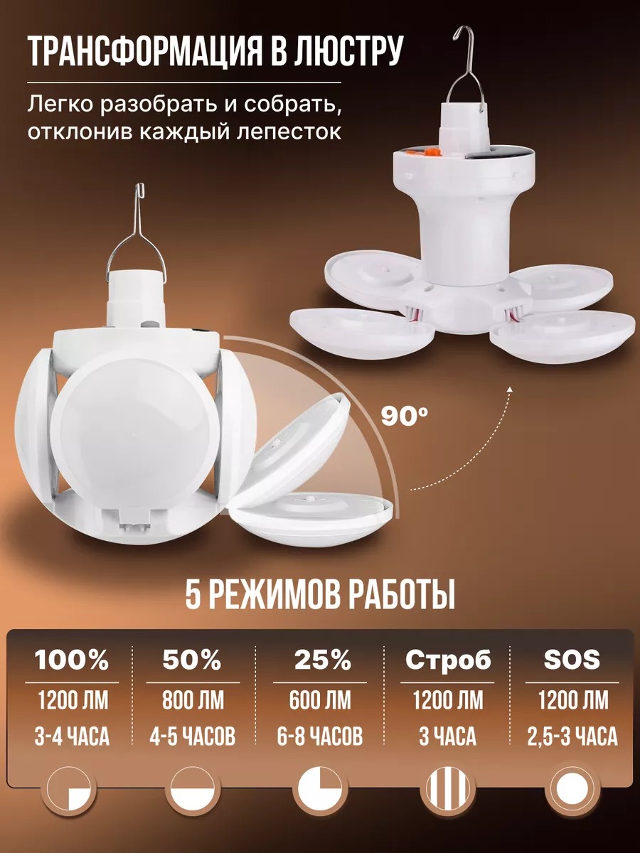 Кемпинговая подвесная лампа - незаменимый помощник в любых условиях: во дворе, гараже, доме, палатке, беседке и т.д. Кемпинговый фонарь Camping Lamp создаст приятную, уютную и комфортную атмосферу во время похода, путешествий или на вашем садовом участке тёплым летним вечером.