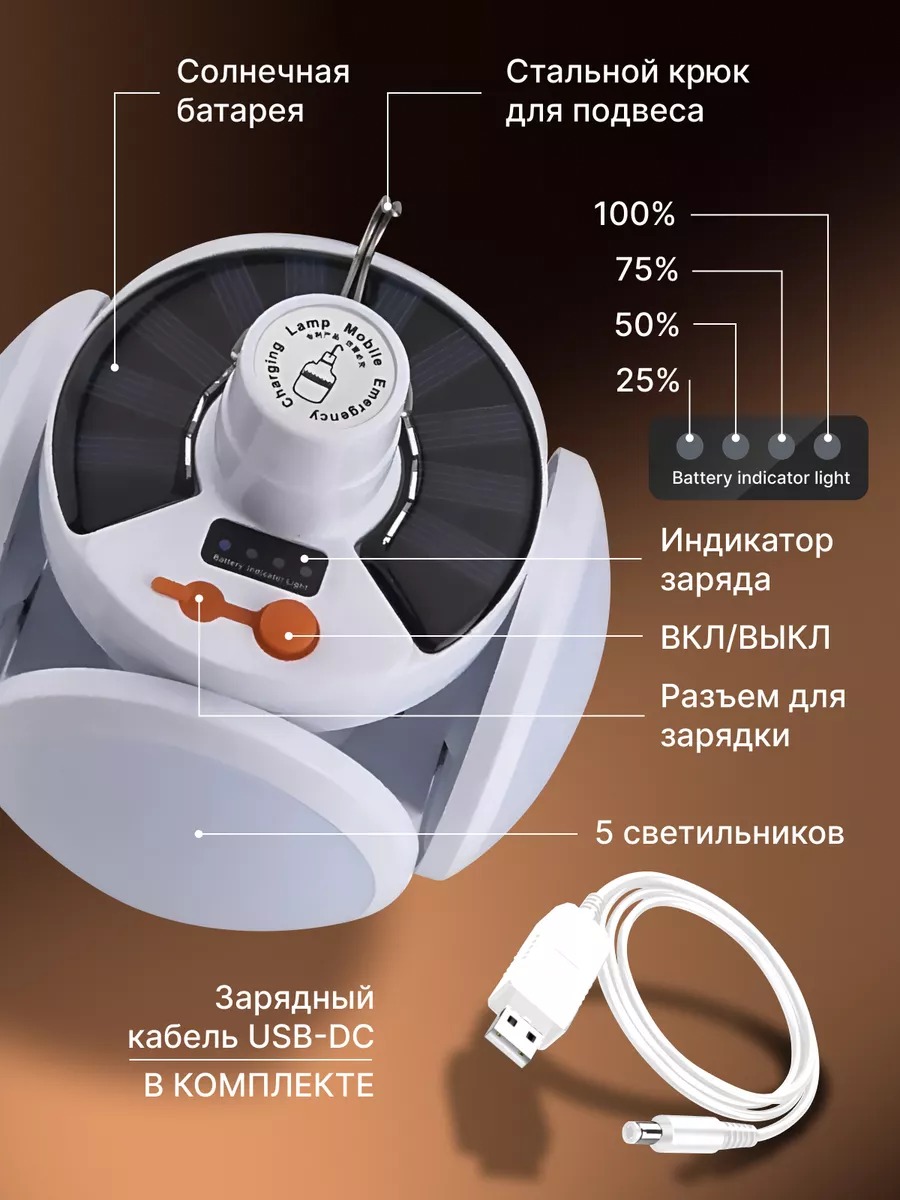 Мощные светодиодные лампы хорошо освещают окружающее пространство и при этом не будут раздражать глаза за счет матового стекла. Металлический крюк позволит подвесить фонарь садовый в палатке, под тентом или просто на сук дерева. Яркая светодиодная лампа проста в использовании, заряжается от сети – через USB шнур который входит в комплект или от встроенной солнечной батареи.